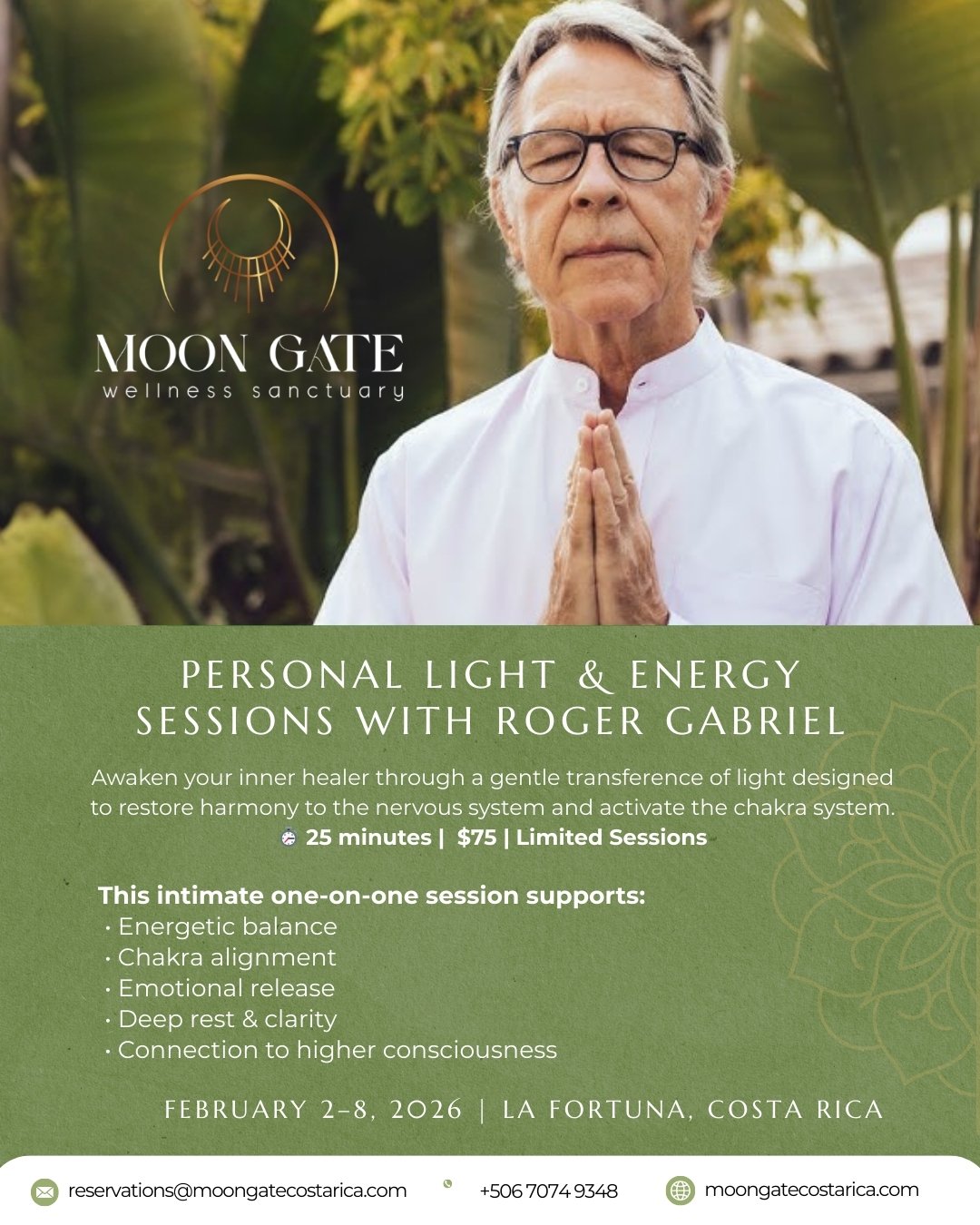 Guided by Roger Gabriel, Sarah Platt-Finger, Avery Whitmore, and Oliveyah Fisch, you’ll explore practices rooted in Vedic wisdom, creative expression, and sound healing — all supported by the natural rhythm of the rainforest.